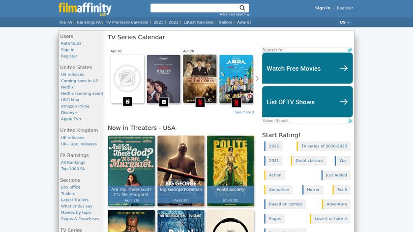There is also a search feature for finding the year’s Oscars. FilmAffinity has several extra features ideal for TV fans, such as bigger image uploads, access to an ad-free version, unlimited ratings, the opportunity to make lists of your favorite TV episodes or movies or browse your friends’ lists, and much more. You may see or stream the latest trailers and check the top FA rankings on the FilmAffinity sites.