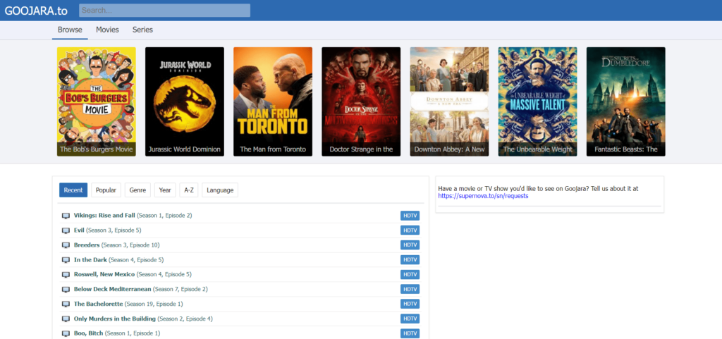 It’s the perfect example of what an open streaming site should look like. Even though it could be better by showing less ads, we can’t complain about its huge library of movies and TV shows. You’ll like Goojara’s TV show collection.